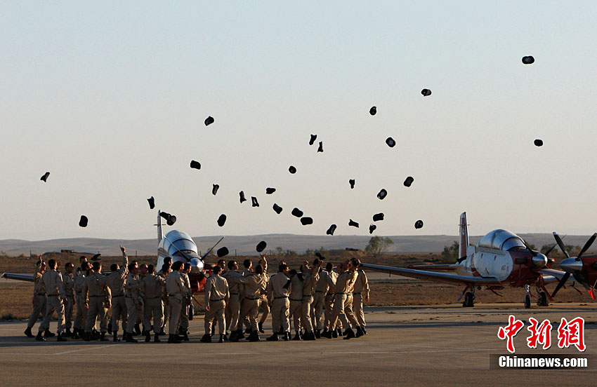 當?shù)貢r間12月28日,在以色列南部城市貝爾謝巴附近的哈特澤里姆空軍基地,以色列空軍飛行學院的畢業(yè)生進行飛行表演。當日,數(shù)十名以色列空軍飛行學院的學員在這里舉行畢業(yè)典禮,并進行飛行表演。