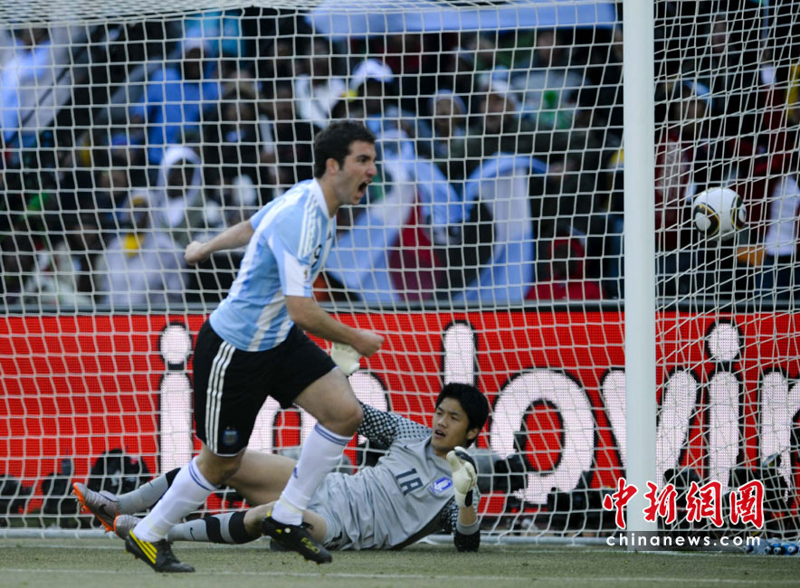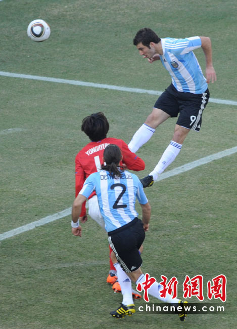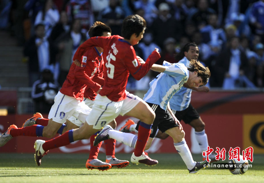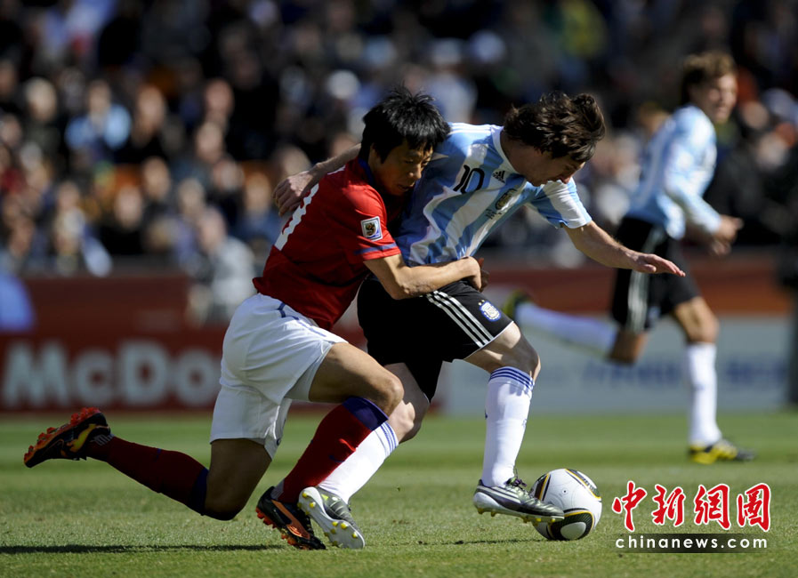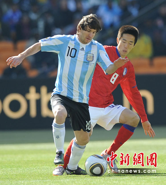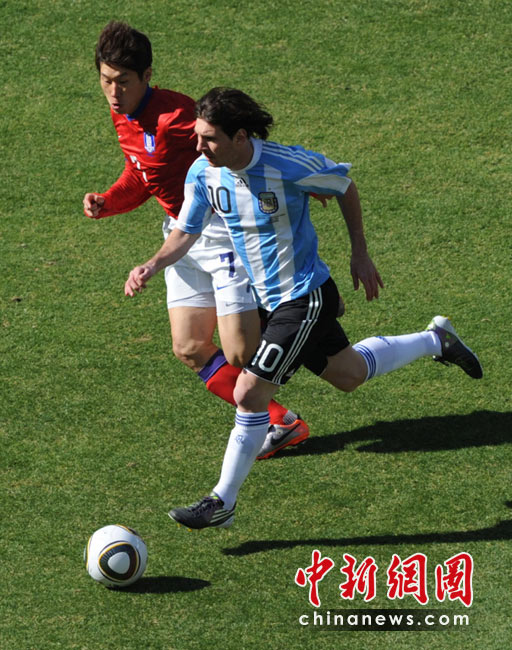 北京時間6月17日19點30分,2010年南非世界杯B組第二輪的首場比賽打響,由兩屆世界杯冠軍得主阿根廷隊迎戰(zhàn)亞洲“太極虎”韓國隊。中新社記者 廖攀 攝
