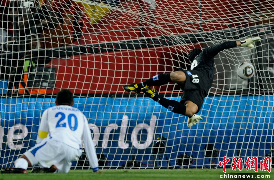 當?shù)貢r間6月21日晚,南非世界杯小組賽第二輪西班牙對洪都拉斯的比賽在約翰內斯堡埃利斯公園體育場展開激烈的爭奪,最終西班牙2比0擊敗洪都拉斯 。 中新社記者 廖攀 攝