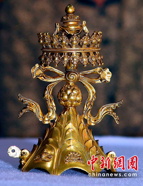6月25日,工作人員將“鎏金銅彌勒菩薩像”、“金翅白海螺法號”、“八瓣蓮花曼荼鑼”等3件重量級文物開箱。7月1日,臺灣故宮博物院將舉辦“圣地西藏---最接近天空的寶藏”特展,展覽分“吐蕃王朝”、“金色寶藏”、“文化交流”、“雪域風(fēng)情”四部分,共有130組件文物參展。中新社記者 宋吉河 攝