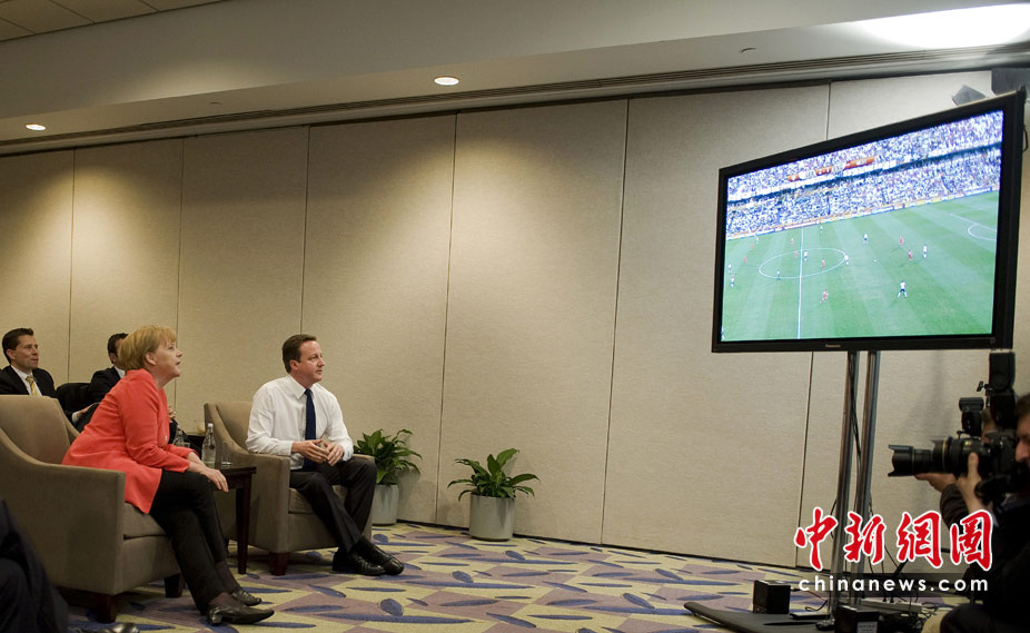 6月27日,正在加拿大參加G20領(lǐng)導(dǎo)人峰會的德國總理默克爾和英國首相卡梅倫,一同觀看了世界杯英格蘭與德國隊(duì)的比賽。