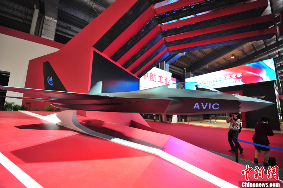 11月13日上午,第九屆中國國際航空航天博覽會在廣東珠海開幕,一架中國先進(jìn)戰(zhàn)斗機(jī)概念模型在中航工業(yè)展臺亮相,從外形上看,與前不久成功試飛的殲31相似,備受關(guān)注。中新社發(fā) 柯小軍 攝