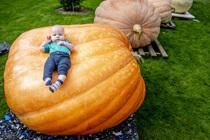 孩子躺在南瓜上