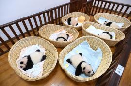 育幼室里的大熊貓寶寶