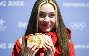谷愛凌展示三枚獎(jiǎng)牌