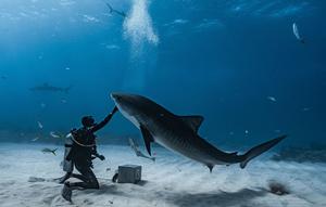 男子水下?lián)崦忯~