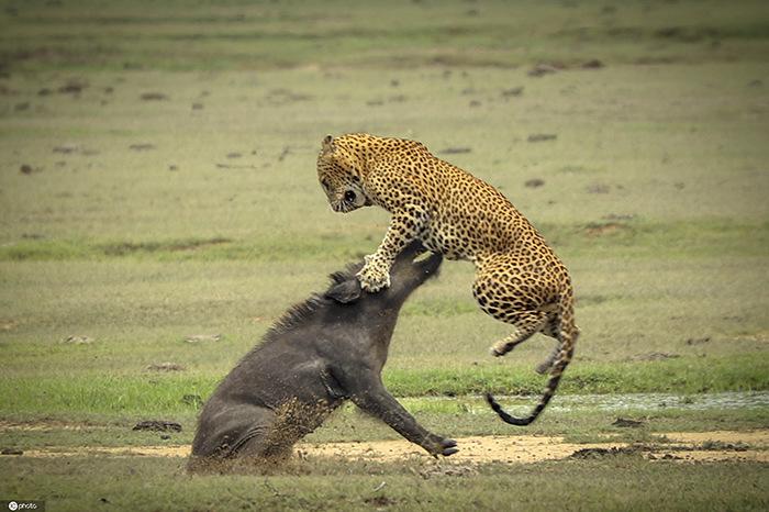豹子為獵食攻擊野豬