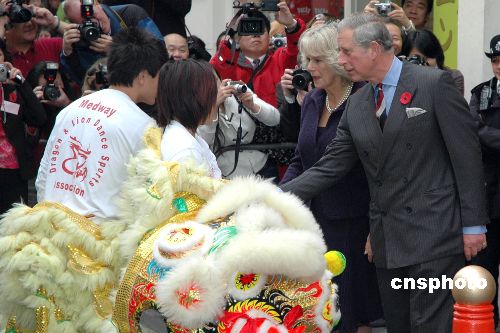 當(dāng)?shù)貢r(shí)間十一月一日上午,英國(guó)王儲(chǔ)查爾斯夫婦到倫敦華埠參觀訪問。中新社發(fā) 程嘉揚(yáng) 攝