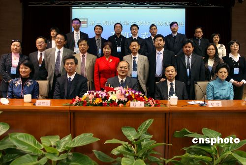 十一月二十六日,“第三期海外華文媒體高級研修班”在北京正式開班。本期研修班共邀請來自15個國家22家海外華文媒體的負責(zé)人參加。圖為國務(wù)院僑辦副主任趙陽(前中)、中國新聞社社長郭招金(前左二)等與研修班全體成員合影留念。中新社發(fā) 張勤 攝