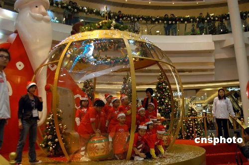 11月27日,香港一商場以“圣誕球的主角”為主題,舉行圣誕裝飾亮燈儀式,小朋友置身“圣誕球”感受另一番的歡和樂。中新社發(fā) 譚達(dá)明 攝