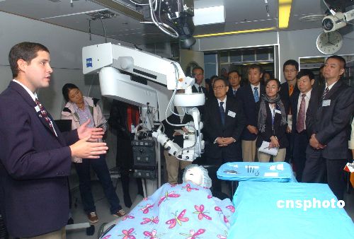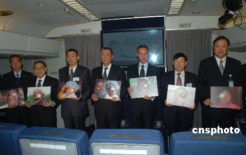 十二月五日,澳門特首何厚鏵(左四)在澳門國(guó)際機(jī)場(chǎng)親自主禮奧比斯眼科飛機(jī)醫(yī)院"光明之行"活動(dòng)開(kāi)幕典禮。肩負(fù)全球救盲使命的奧比斯眼科飛機(jī)醫(yī)院來(lái)澳,將與澳門國(guó)際機(jī)場(chǎng)合作開(kāi)展為期三天的"光明之行"參觀活動(dòng)及慈善拉飛機(jī)活動(dòng),旨在鼓勵(lì)市民關(guān)注全球失問(wèn)題,喚起愛(ài)心,救助盲人。 中新社發(fā) 史利 攝
