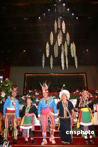 十二月五日下午,古色古香的臺北圓山飯店舉行圣誕點燈儀式,并請來原住民作為大地的代言人,從大地采光,點燃圣誕之燈。據了解,今年圓山飯店的圣誕樹造型的燈使用環(huán)保材料,圣誕之后,仍可用作日常的照明。中新社發(fā) 陳國華 攝