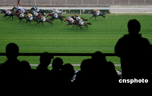 十二月九日,二零零七年國(guó)泰航空國(guó)際賽馬日在香港沙田馬場(chǎng)舉行,四場(chǎng)國(guó)際賽事包括香港杯、香港瓶、香港一哩錦標(biāo)及香港短途錦標(biāo),香港馬在其中兩場(chǎng)奪冠,成績(jī)不俗。特首曾蔭權(quán)出席并向獲得香港杯的選手頒獎(jiǎng)。中新社發(fā) 武仲林 攝