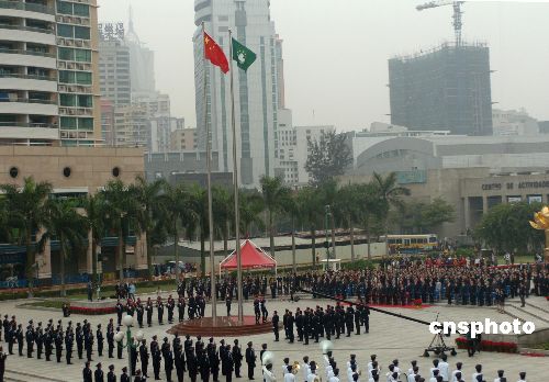 十二月二十日清晨,澳門蓮花廣場舉行隆重的升旗儀式,慶祝澳門特別行政區(qū)成立八周年。澳門特首何厚鏵、中央人民政府駐澳門聯(lián)絡辦公室主任白志健及各界人士出席升旗儀式。中新社發(fā) 史利 攝