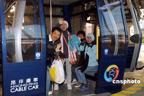12月31日傍晚,游客在香港昂坪360纜車上欣賞風景。當日,停駛逾半年的昂坪360纜車正式重開,吸引近七千人乘搭。中新社發(fā) 蔡蔓莉 攝
