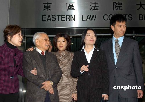 蔣麗莉(右二)在父親蔣震(左二)及家人的陪伴下,到香港東區(qū)裁判法院應訊。