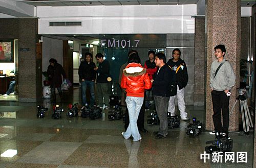 一月十八日,備受爭(zhēng)議的臺(tái)“教育部長(zhǎng)”杜正勝傳出已口頭請(qǐng)辭。圖為今天傍晚守候在臺(tái)“教育部”門口大廳,等待杜正勝下班的臺(tái)媒記者。陳立宇 攝