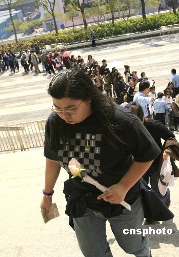 圖:民眾手捧鮮花排隊(duì)入場參加沈殿霞追思會