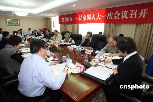 3月5日,出席十一屆全國(guó)人大一次會(huì)議的澳門代表團(tuán)舉行全體會(huì)議,審議政府工作報(bào)告。中新社發(fā) 張宇 攝