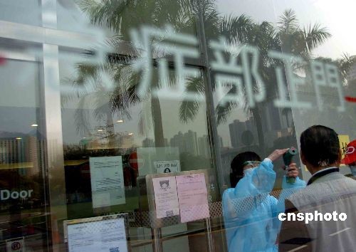 三月十一日,香港屯門醫(yī)院為進(jìn)入急癥室者事前須探熱及洗手消毒。屯門醫(yī)院近日成為流行性感冒壓力下的重災(zāi)區(qū),因應(yīng)求診人數(shù)增加及流感高峰期,在急癥室實(shí)施發(fā)燒病人分流措施,預(yù)防流感擴(kuò)散。中新社發(fā) 譚達(dá)明 攝