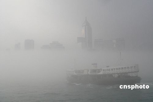 四月六日,香港清晨部分海域能見度低于兩海里,蒲臺(tái)島海域今早約六時(shí)發(fā)生兩艘貨船相撞意外,其中一艘貨船船尾被撞穿入水,事件中無(wú)人受傷。國(guó)泰航空早上一班由臺(tái)北來(lái)港的航機(jī)轉(zhuǎn)飛廣州,傍晚才起飛來(lái)港。另有一些離島至港島的渡船停開。圖為上午維港掩映在飄渺的白霧中。 中新社發(fā) 陳京松 攝