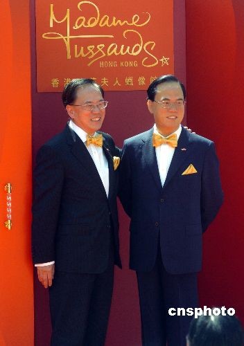 圖:香港特首曾蔭權(quán)為自己的蠟像揭幕