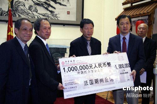 圖:旅法華僑華人踴躍向四川地震災(zāi)區(qū)捐款