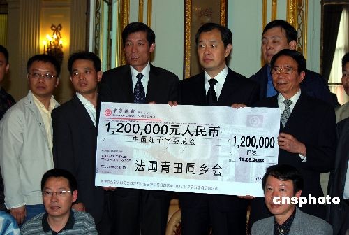法國(guó)青田同鄉(xiāng)會(huì)十九日通過中國(guó)駐法大使館,向四川地震災(zāi)區(qū)捐款,支持抗震救災(zāi)。至今,旅法僑胞向四川地震災(zāi)區(qū)捐款已超過一千萬(wàn)元人民幣。