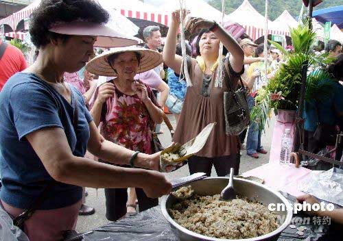 圖:臺灣民間迎端午時興“街頭包粽DIY”