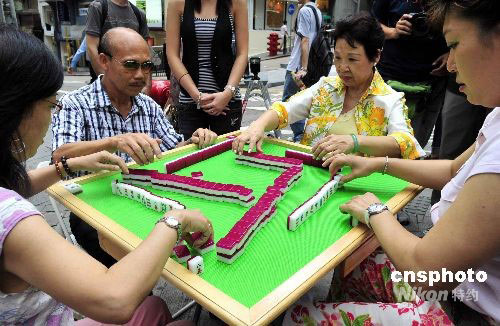 九月五日,首屆“世界麻將大賽”冠軍許宗澧在記者會(huì)上與其它選手比較高下。第二屆“世界麻將大賽”將于九月十九日至二十一日在澳門舉行,提供麻將競(jìng)賽有史以來(lái)的最高額獎(jiǎng)金一百萬(wàn)美元。中新社發(fā) 譚達(dá)明 攝