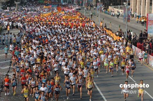 十月一日上午八時許,澳門各界民眾參加的“國慶歡樂跑”在金蓮花廣場啟動。“歡樂跑”是澳門國慶日一項傳統(tǒng)民間體育活動。中新社發(fā) 畢永光 攝