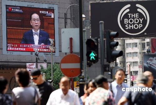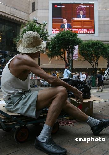 十月十五日,香港特別行政區(qū)行政長(zhǎng)官曾蔭權(quán)在立法會(huì)發(fā)表二零零八至零九年施政報(bào)告,眾多香港市民在時(shí)代廣場(chǎng)通過大屏幕觀看直播。中新社發(fā) 武仲林 攝