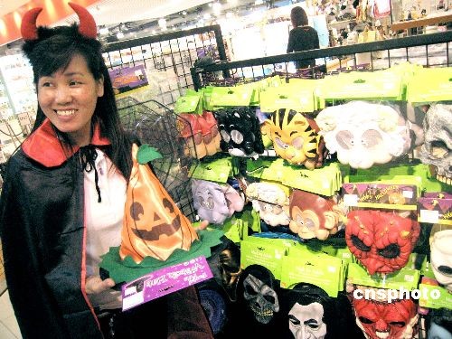 一年一度的萬圣節(jié)將至,香港一商場內(nèi)的萬圣節(jié)裝飾多種多樣,吸引顧客。中新社發(fā) 張勤 攝