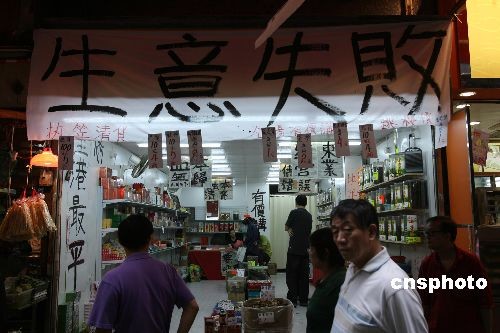 十一月二日,香港灣仔一店鋪打出結(jié)束營(yíng)業(yè)、低價(jià)清盤的橫幅。數(shù)據(jù)表明,在剛剛過去的十月份,香港已有近五十家港企申請(qǐng)清盤,以主營(yíng)制造業(yè)和零售業(yè)的中小企業(yè)為主,其中也不乏合俊、泰林等有一定規(guī)模和歷史的企業(yè)。業(yè)內(nèi)人士認(rèn)為,受金融海嘯直接影響而倒閉的公司將陸續(xù)出現(xiàn),今年年底將迎來倒閉高潮。中新社發(fā) 武仲林 攝