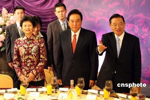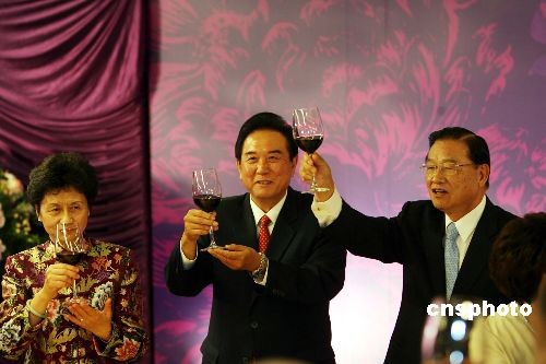 十月一月三日晚,臺灣;鶗麻L江丙坤在101大樓設(shè)宴,為中午抵臺的海協(xié)會會長陳云林洗塵。中新社發(fā) 洪少葵 攝