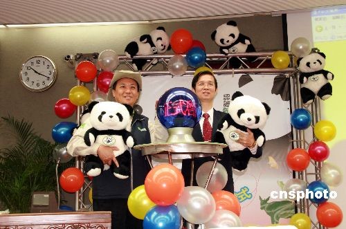 大陸贈(zèng)臺(tái)大熊貓“團(tuán)團(tuán)”、“圓圓”即將來臺(tái),臺(tái)北市立動(dòng)物園12月5日開通專門網(wǎng)站“臺(tái)北大熊貓保育網(wǎng)”。圖為臺(tái)北市立動(dòng)物園園長葉杰生(左)和臺(tái)北市教育局局長吳清山一起啟動(dòng)網(wǎng)站。中新社發(fā) 周兆軍 攝