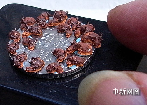 今年是農(nóng)歷牛年,臺灣著名微雕家陳逢顯特地用磚泥雕刻了十七只小牛,置于一枚十元硬幣上,以此來紀念牛年,希望臺灣經(jīng)濟能“牛轉(zhuǎn)乾坤”。