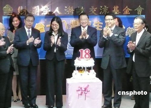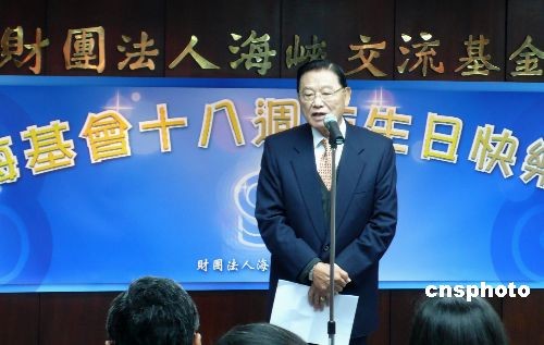 三月九日,臺(tái)灣海峽交流基金會(huì)在臺(tái)北舉辦成立十八周年慶祝活動(dòng)。該會(huì)董事長(zhǎng)江丙坤表示,兩岸“大三通”基本實(shí)現(xiàn)后,其效果逐漸顯現(xiàn),;鶗(huì)未來(lái)將會(huì)繼續(xù)推動(dòng)兩岸制度性協(xié)商,共期兩岸和平,經(jīng)濟(jì)繁榮。中新社發(fā) 路梅 攝