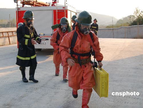 11月6日,安徽省含山縣舉行特種設(shè)備“事故”應(yīng)急反應(yīng)演習(xí),質(zhì)量技術(shù)監(jiān)督、消防、特種設(shè)備救援等多支專業(yè)隊(duì)伍參加了演習(xí)。演習(xí)旨在檢驗(yàn)發(fā)生特種設(shè)備重特大事故后的現(xiàn)場(chǎng)聯(lián)動(dòng)反應(yīng)能力,提高相關(guān)部門在信息傳遞流程、應(yīng)急反應(yīng)速度和應(yīng)急救援技能。中新社發(fā) 田斌峰 攝
