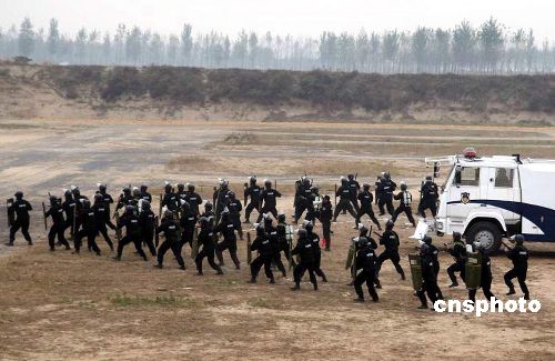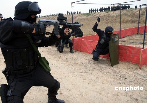 十一月十四日,鄭州特巡警支隊(duì)的特警隊(duì)員們在緊張地訓(xùn)練,備戰(zhàn)于十二月上旬舉行的全省特警大比武。據(jù)悉,此次大比武將涉及到法律、法規(guī)、一千五百米武裝越野、手槍胸環(huán)靶射擊、八五或八八式狙擊步槍射擊等。該特巡警支隊(duì)自今年七月份組建以來,即擔(dān)負(fù)起特警反恐、處突的職能。中新社發(fā) 李志全 攝