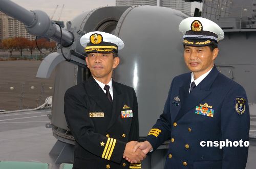 11月28日下午,正在日本進行正式友好訪問的中國海軍“深圳號”官兵開始與日本海上自衛(wèi)隊進行交流活動。中新社發(fā) 滕劍峰 攝