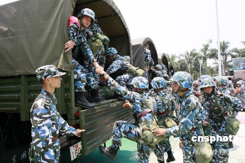 中國海軍陸戰(zhàn)隊官兵緊急起程奔赴汶川災(zāi)區(qū)