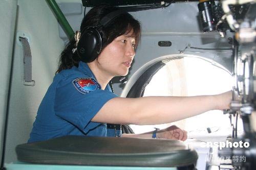 5月18日,中國空軍運輸航空兵某師七名女飛行員駕機升空直飛災(zāi)區(qū),緊急空運物資。上午11時33分,由女飛行員宋雪飛、王亞平、陳宇、陳金蘭、曹艷艷、王鴻、劉文力駕駛的7架飛機裝滿30多噸救災(zāi)物資先后昂首起飛,15時38分全部到達(dá)成都雙流機場。圖為女飛行員檢查機載設(shè)備。中新社發(fā) 周建華 攝