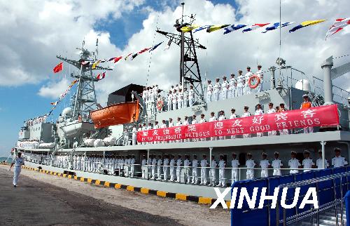 11月5日,中國海軍“鄭和號”訓練艦駛入柬埔寨西哈努克市的西哈努克港,開始為期9天的柬埔寨之旅!班嵑吞枴笔歉鶕(jù)中柬兩軍制定的2008年友好交流計劃抵柬進行正式友好訪問的,這也是中國海軍艦船首次訪問柬埔寨。新華社記者夏林攝