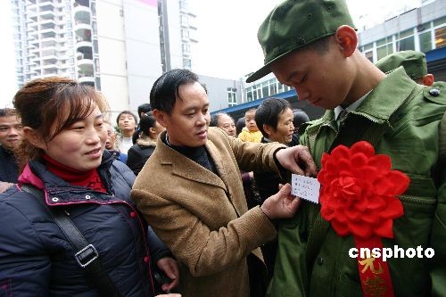 11月19日,進藏新兵在親人們的歡送下離開家鄉(xiāng)。當日,重慶市永川區(qū)首批進藏新兵在區(qū)人武部大院集中,完成了相關交接手續(xù)后,新兵們在親人的祝福聲中,登上大巴車依依不舍地告別親人、告別故鄉(xiāng),踏上了保家衛(wèi)國的征程。中新社發(fā) 陳仕川 攝