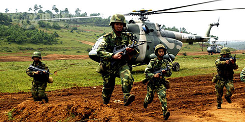 圖:成都軍區(qū)某部與陸航部隊(duì)協(xié)同演練