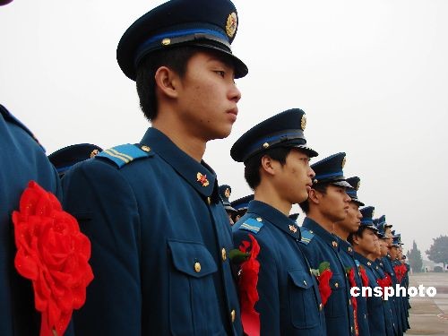 11月23日,退伍老兵向八一軍旗敬最后一個軍禮。當(dāng)日,濟(jì)空某飛行學(xué)院為百余名即將退伍的老兵舉行了莊嚴(yán)的向軍旗告別儀式,并組織退伍老兵種植老兵林。中新社發(fā) 耿國慶 攝