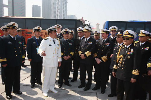 今天各國海軍官兵還將互相參觀軍艦,?吭谇鄭u港的中外艦艇也將向民眾開放。