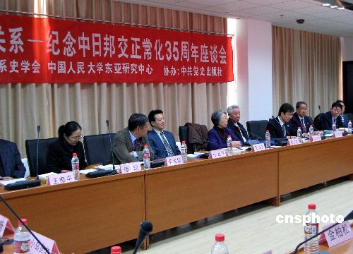 10月18日,“廖承志與中日關(guān)系——紀(jì)念中日邦交正;35周年座談會(huì)”在北京中國人民大學(xué)舉行。該座談會(huì)由中國中日關(guān)系學(xué)會(huì)、中國人民大學(xué)東亞研究中心共同舉辦,與會(huì)的有中日友好協(xié)會(huì)副會(huì)長王效賢、日本駐華大使館公使道上尚史、以及幾十位專家學(xué)者、相關(guān)人士。大家在緬懷廖承志先生的同時(shí),對(duì)中日關(guān)系的發(fā)展紛紛發(fā)表了自己的見解,氣氛凝重而又不失建設(shè)性。據(jù)悉,這次座談會(huì)的舉行源自新近由中共黨史出版社出版的一本新書,書名為《廖承志與日本》。作者是原新華社駐東京首席記者吳學(xué)文先生和時(shí)事出版社編審?fù)蹩┫壬V行律绨l(fā) 單琪 攝