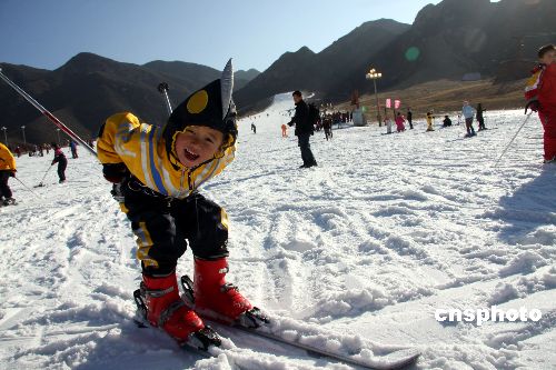 圖為一名兒童在快樂地試滑。12月2日,隨著“陽光冰雪天使”滑雪節(jié)開幕,首都青少年科技戶外運(yùn)動(dòng)素質(zhì)教育基地在北京八達(dá)嶺滑雪場(chǎng)成立。當(dāng)天的儀式上,百名來自奧運(yùn)建設(shè)一線工人的子女和希望小學(xué)的孩子們,與一千多名滑雪愛好者首批體驗(yàn)試滑,感受今冬第一場(chǎng)“雪”。中新社發(fā) 張愛東 攝